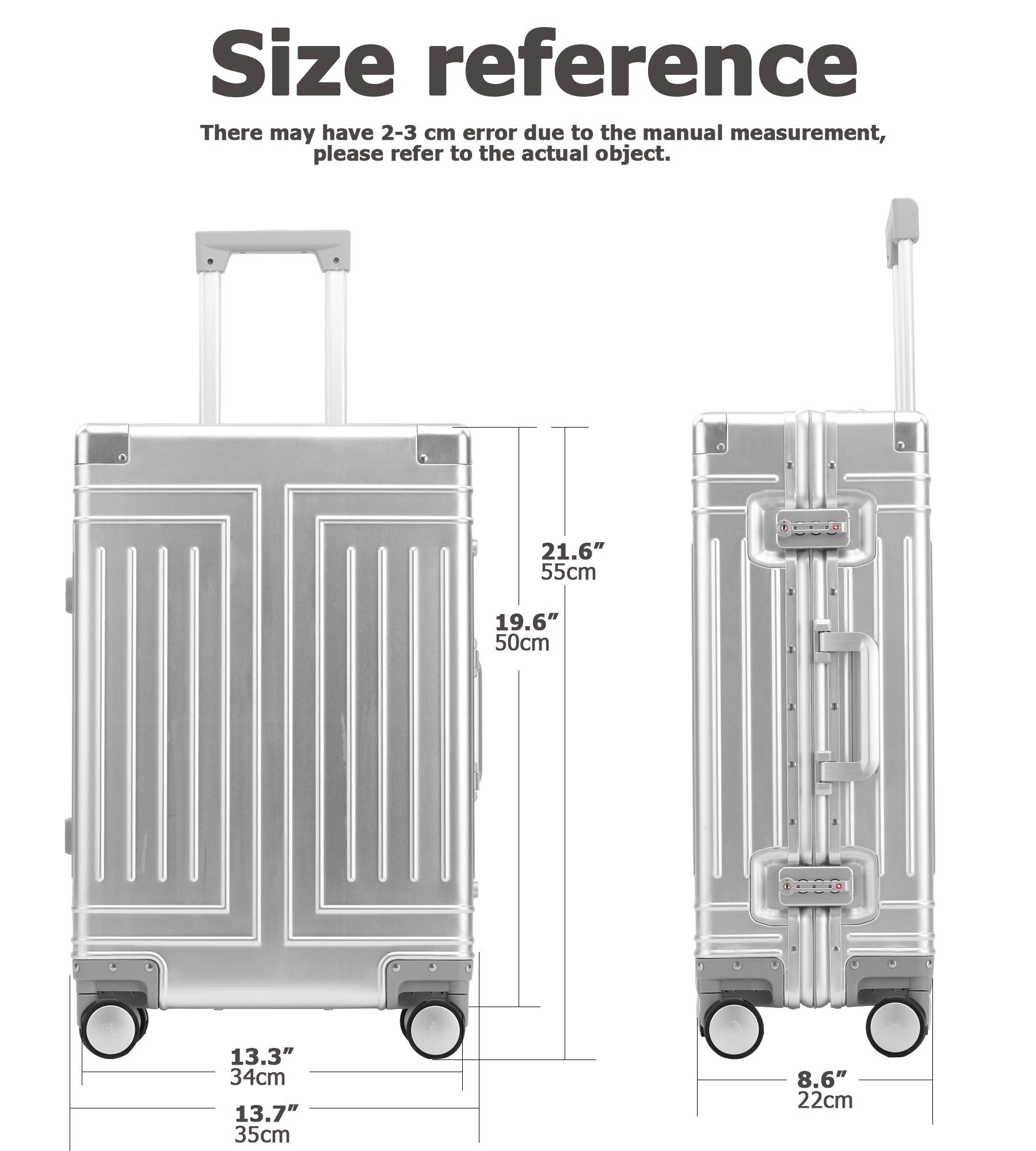 - High-end Materials: This hard shell luggage is made of Aluminum Alloy, aluminum frame with zipperless design, increase luggage strength and durability to protect your belongings.