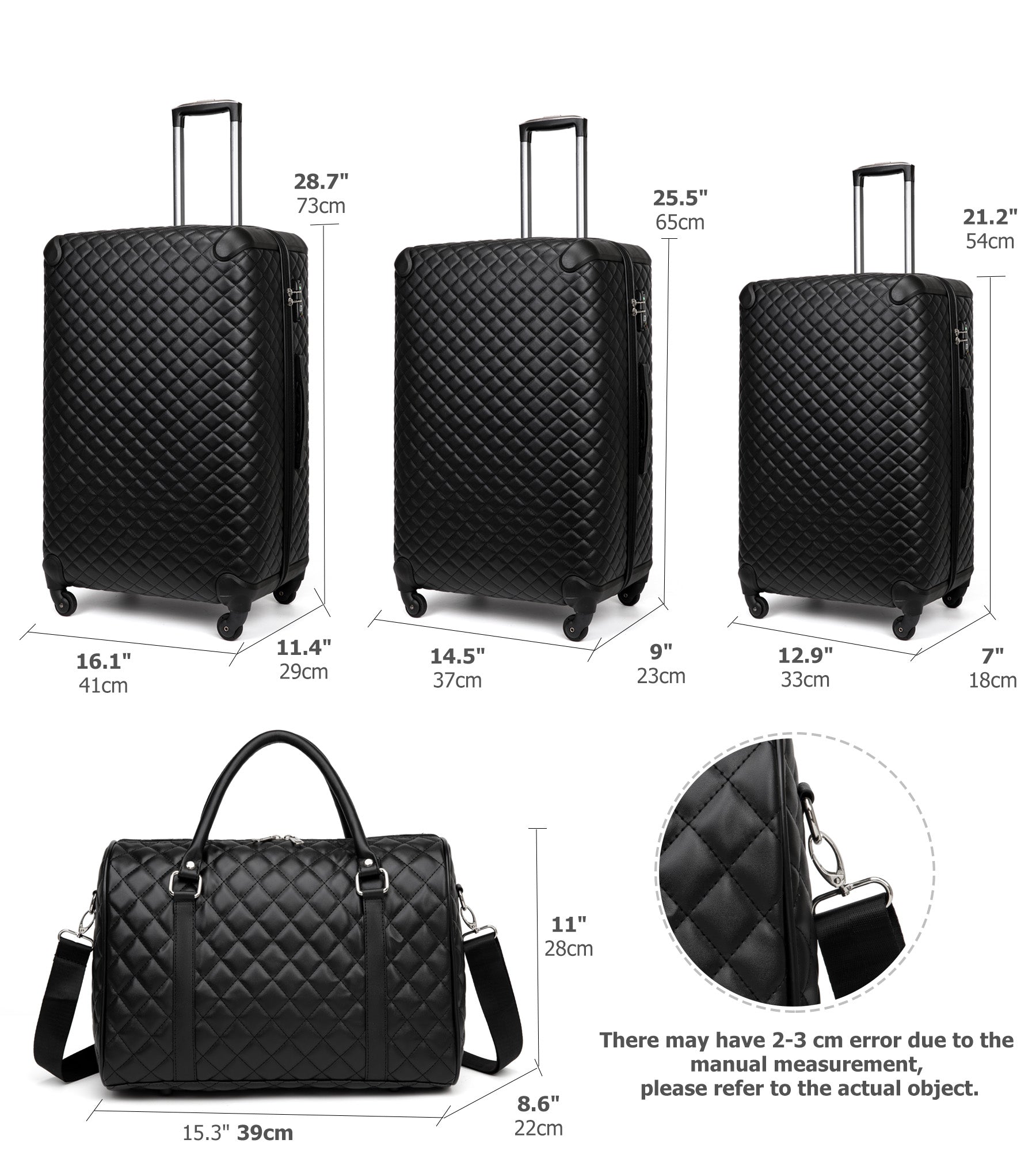 - The Luggage Set Dimensions & Weight: The travel bag 1.7lb/15.3"(39 cm)L*8.6"(22 cm)W*11"(28 cm)H ; 20in 6.7lb/14.1"(36 cm)L*8.6"(22 cm)W*22"(56 cm)H; 24in 8.8lb/16.1"(41cm)L*10.6"(27 cm)W*25.9"(66 cm)H; 28in 11.8lb/18.1"(46 cm)L*12.9"(33 cm)W*29.9"(76 cm)H.