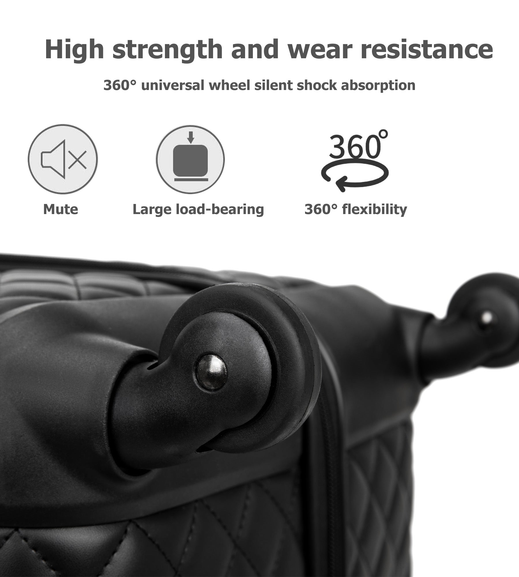- Smooth Maneuverability 360° Silent Wheels: Equipped with high-strength 360° silent wheels, the rolling luggage provides smooth and effortless maneuverability. These wheels are designed to reduce friction, absorb shocks, and offer stability, allowing you to navigate various surfaces with ease.
